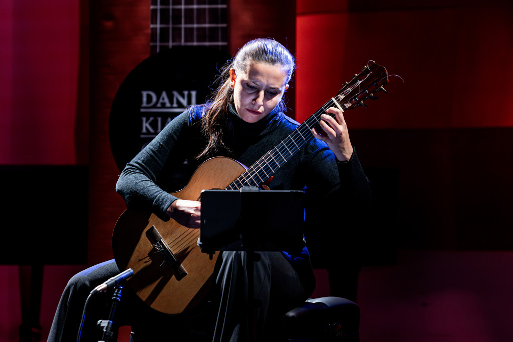Prva je na pozornicu stupila Carlotta Dalia, rođena u Grossetu (Toskana) 1999., jedna od najistaknutijih mladih klasičnih gitaristica današnjice. Diplomirala je 2017. na Accademia Chigiana u Sieni u klasi Oscara Ghiglie, a poslijediplomski studij završila 2022. na Mozarteumu u Salzburgu. Dobitnica je više od četrdeset nagrada na nacionalnim i međunarodnim natjecanjima, među kojima su prva mjesta u Uppsali, Hong Kongu, Miamiju, Madridu i Parmi (natjecanje Niccolò Paganini). U programu se odlučila nasloniti na opus Ide Presti – gitaristice i skladateljice koja je i sama rušila rodne i umjetničke barijere.