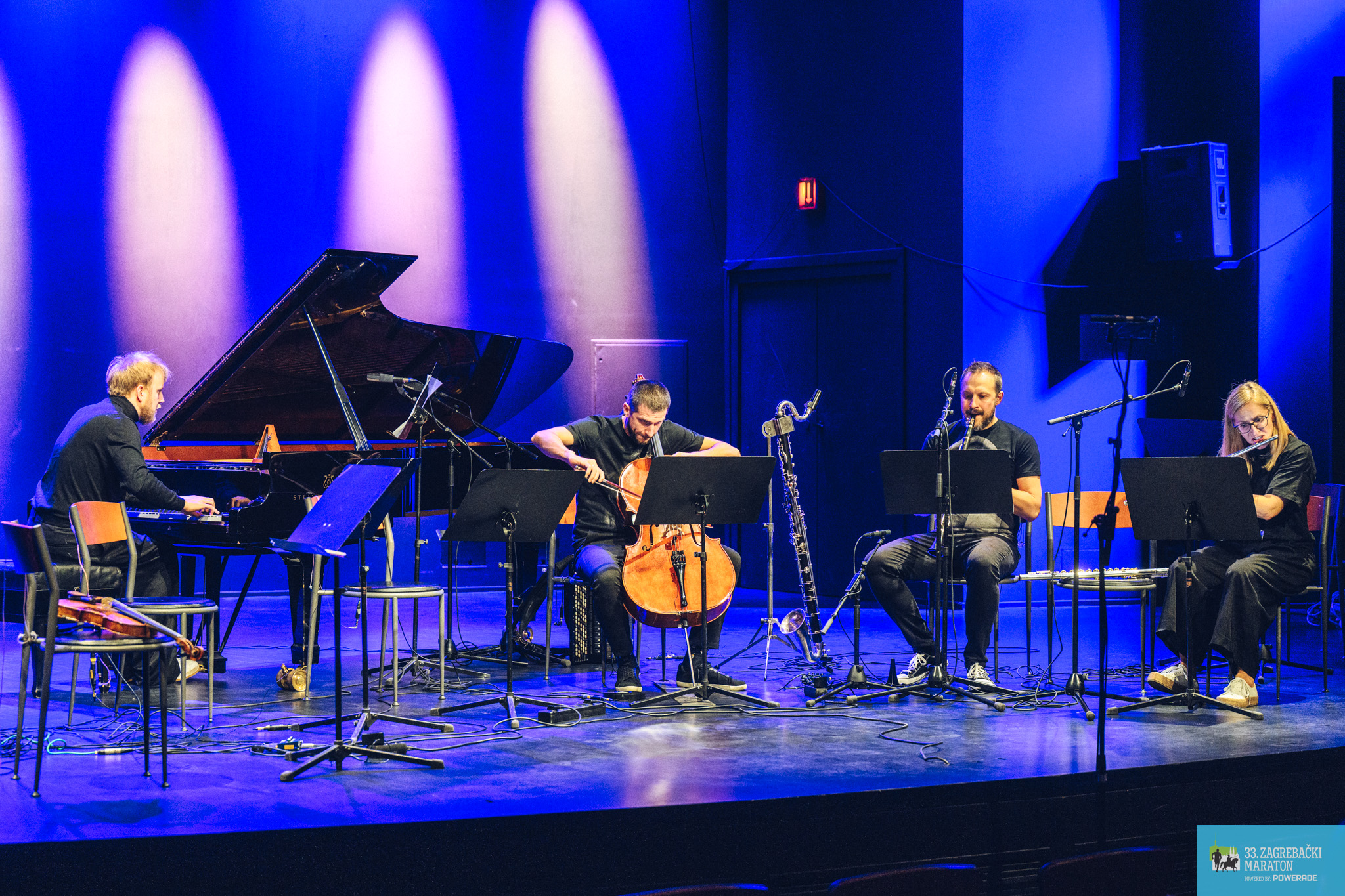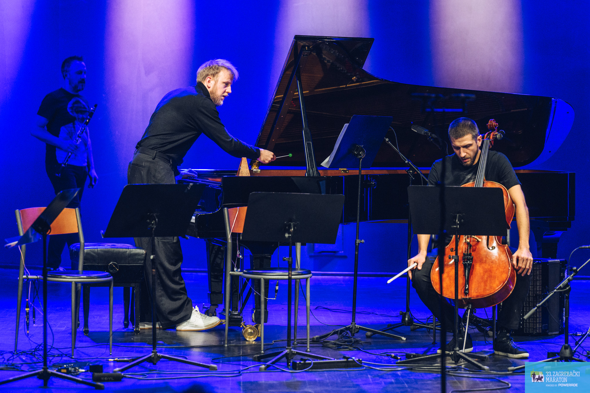 Zanimljiv i poticajan koncert s djelima koja na razne načine redovito uključuju elektroniku otvorila je skladba Paradise Blue (We’d Never Be Apart) Paweła Malinowskog za bas klarinet, harmoniku i elektroniku koja intervenira, ali povremeno ostvaruje i ravnopravnu ulogu u nježnom, blago obojenom, ali i živahnom trijalogu. Malinowski, među ostalim, opisuje kako „najjednostavnije, naivne radnje koje se zajedno izvode mogu postati rituali protiv malaksalosti kapitalističkog realizma“ i tako postati vrsta otpora.