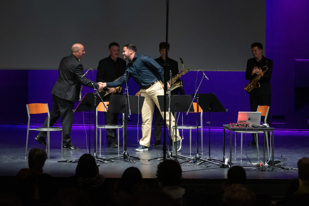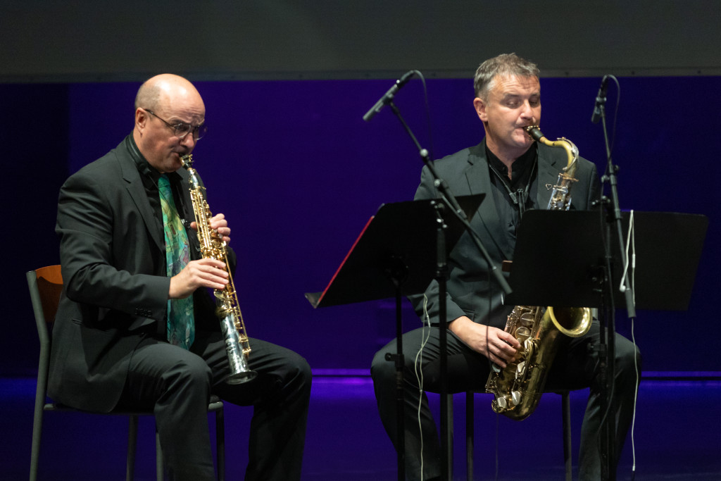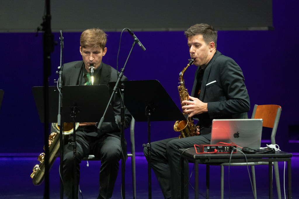 Između Jelaske i Vlaheka smjestio se diptih koji je angažiranim tekstovima (bilo u elektroničkoj traci, bilo uživo) razbarušio kompaktnost zvuka saksofonskih vizura: najprije skladba Gordana Tudora (laureat Nagrade Grada Čakovca Josip Štolcer Slavenski za godinu 2023., kad je djelo praizvedeno na Glazbenoj tribini u Osijeku), a potom i možda najuzbudljiviji trenutak večeri kad se kvartetu priključio gost Robert James Hudulin.