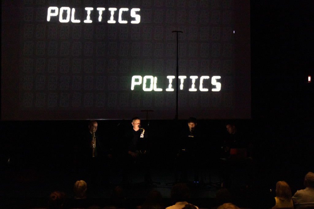 Tudorova Politics (not according to Aristotle) uz elektroniku koja ima i videoprojekciju postala je jednom od repertoarnih točki kvarteta, nažalost uvijek aktualna u odnosu prema realitetu koji nam kroji politika odnosno političari, ali i realitetu društvenih mreža, komentara i angažmana. Minimalistička formatiranost i elektroničko oblikovanje glasova koji cjepkaju riječi (što je i vizualno osnaženo) podsjećaju na neke Veldhuisove izdanke, a domišljatost Tudorove kreacije u različitim koncertnim kontekstima uvijek djeluje svježe.