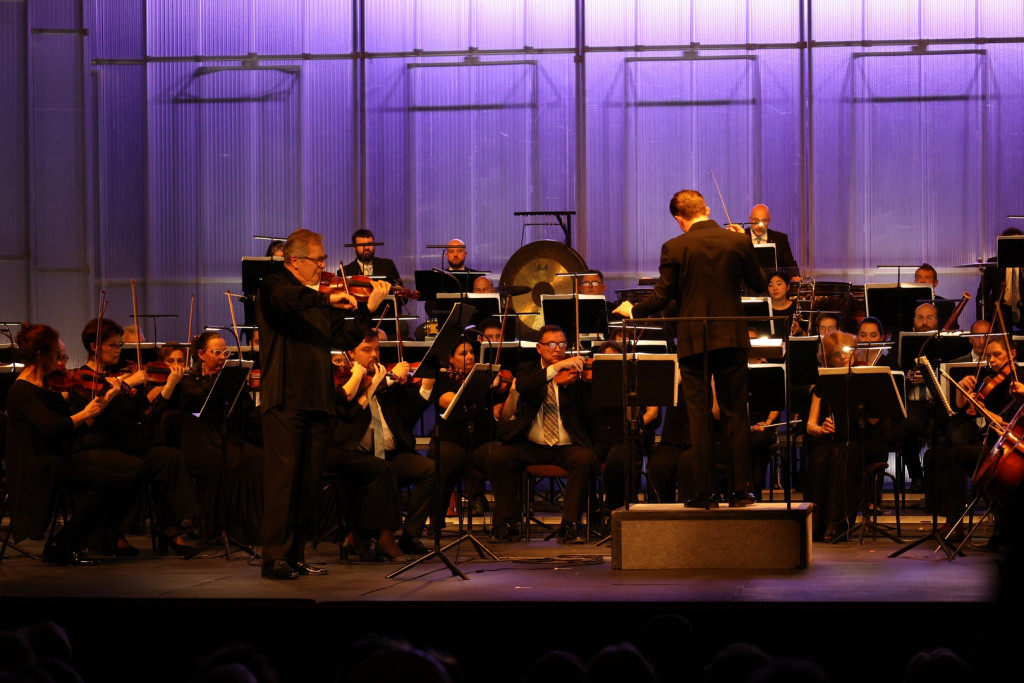 Prvo djelo večeri, jednosatni violinski koncert, izveo je hrvatski violinist zavidne biografije, Goran Končar. Njegov ulazak na pozornicu bio je nenametljiv i gotovo samozatajan, lišen uobičajene solističke demonstrativnosti, što ponajbolje odaje dojam umjetničke posvećenosti glazbi. Zbog toga je i teško pisati nešto što bi zvučalo kao prigovor njegovoj izvedbi.