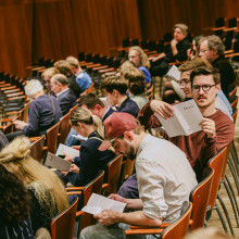 Skladatelj i interpreti njegove glazbe u zajedničkom naklonu zadovoljnoj publici / foto: Matej Grgić