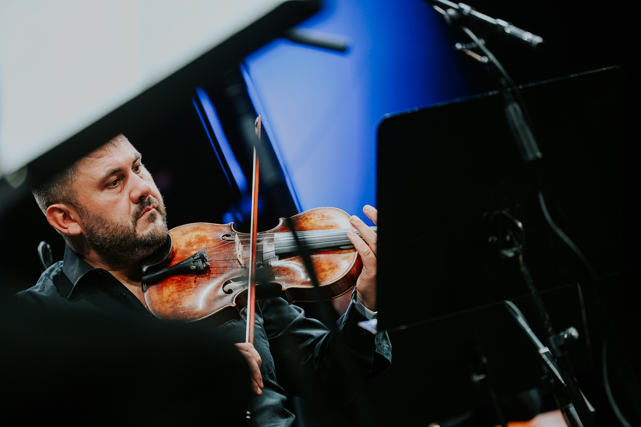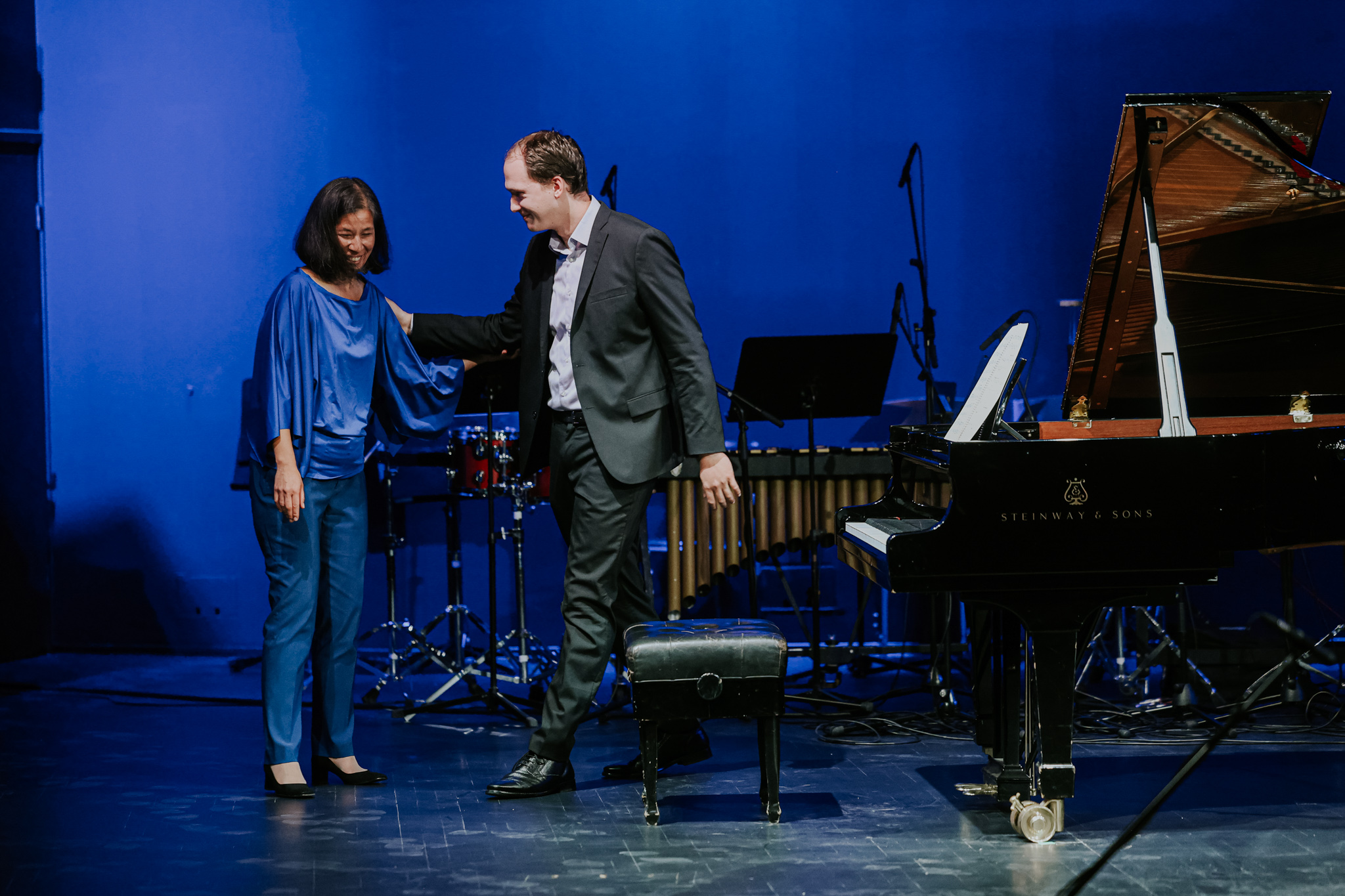 Početak večeri bio je u znaku skladbe All That Blues, u uvjerljivoj i vrlo sugestivnoj izvedbi pijanistice Mije Elezović, jedne od najgorljivijih sustavnih promicateljica suvremenog glazbenog stvaralaštva. U djelu nastalom 2000. godine za nizozemskog pijanista Marcela Wormsa, skladatelj kao temelj koristi 12-taktnu harmonijsku progresiju iz koje razvija pet varijacija, protkanih elementima njegova glazbenog izričaja i bluesa. U prilog uspjehu te efektne skladbe, koja je i ovom prigodom izazvala oduševljenje publike, govori i činjenica kako ju je Worms snimio za album suvremenih skladbi nadahnutih bluesom, a partituru je izdala nakladnička kuća Peermusic.