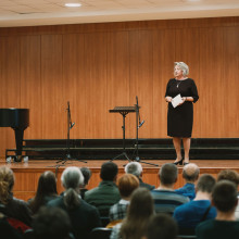 Program ove večeri donio je još dvije skladbe namijenjene zborskom zvuku. Mješoviti zbor pod ravnanjem prof. Danijele Božičević izveo je Uspavanku Krešimira Seletkovića, djelo skladano na narudžbu Zagrebačkog glazbenog podija Centra za kulturu Trešnjevka kao obavezna skladba za 9. natjecanje pjevačkih zborova održano 2008. godine u Zagrebu. Još „drastičnije“ nego Drakulić, Seletković poseže za samo nekoliko posljednjih stihova Tadijanovićeve opsežnije i gotovo pripovjedne pjesme Večer nad gradom.