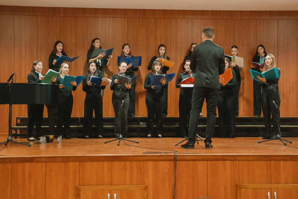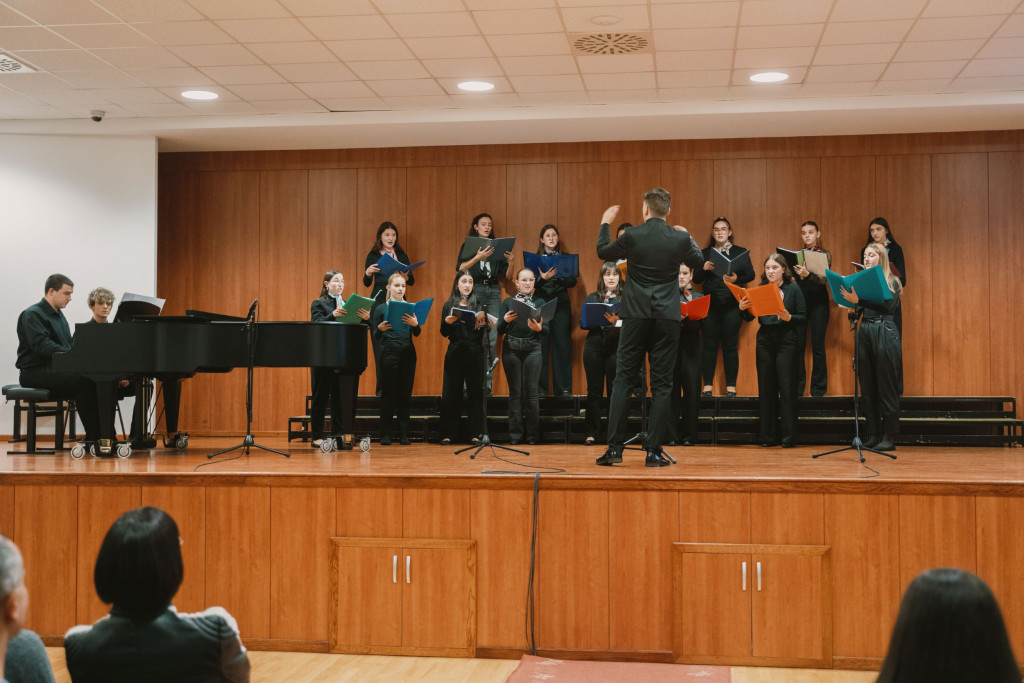 Večer je otvorio Djevojački zbor Glazbene škole pod ravnanjem učenika Nicolasa Meca i uz klavirsku pratnju učenika Stjepana Živatovića, izvevši Rano sunce u šumi Ivana Josipa Skendera. Riječ je o skladbi koja je nastala na poticaj brodske glazbene škole te je praizvedena na Tadijinim jesenima 2023. godine. Skender je odličan poznavatelj vokalnih mogućnosti učenika ovog uzrasta. Jednostavna struktura skladbe, primamljiva melodija, ljepota zvučnosti akordike koja prati melodijski tijek, blagi polifoni prepleti koji prate motive teksta, sve se to združilo u skladnu i dopadljivu zborsku minijaturu koja je već treći put zaredom dio programa koncerata Tadijinih jeseni.