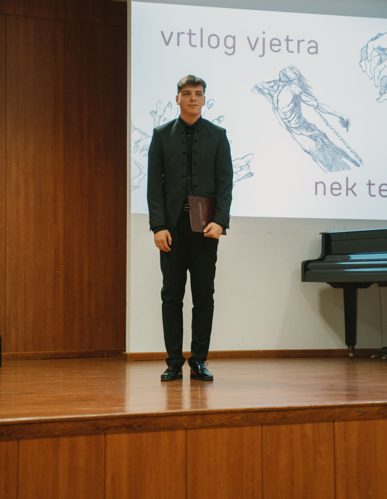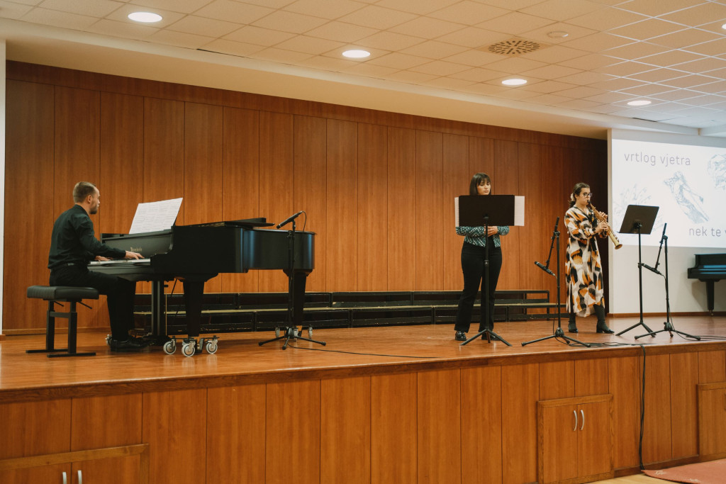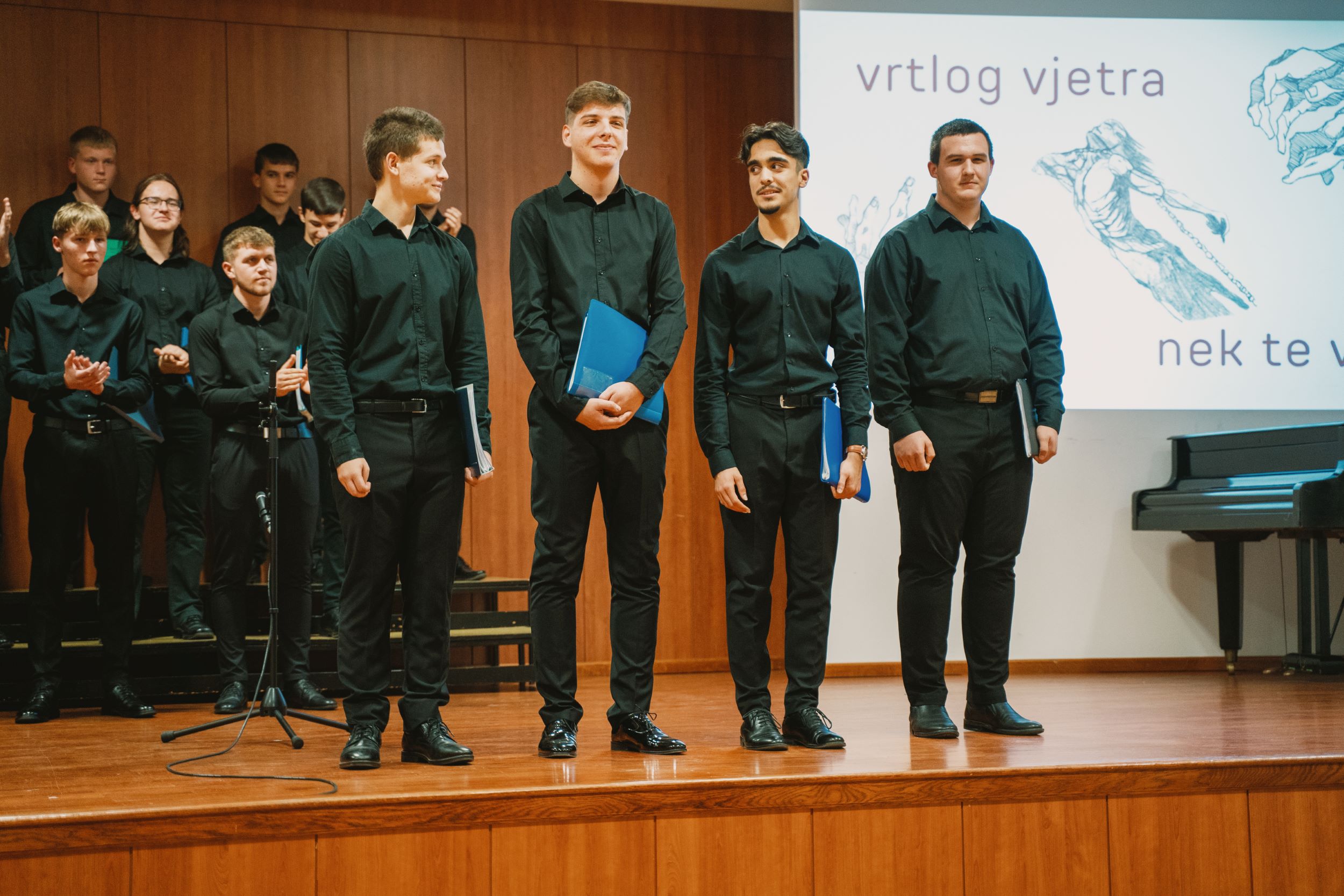 Poseban trenutak večeri bila je praizvedba novog glazbenog djela, a pozivu na skladanje ove se godine odazvala Sanja Drakulić. Skladateljičinu zborsku skladbu Dječak u sjeni vrbe praizveo je Muški komorni zbor pod ravnanjem prof. Danijele Božičević. Osobitu čast ukazala je sama autorica koja je prisustvovala praizvedbi i srdačnim se riječima obratila izvođačima i publici.