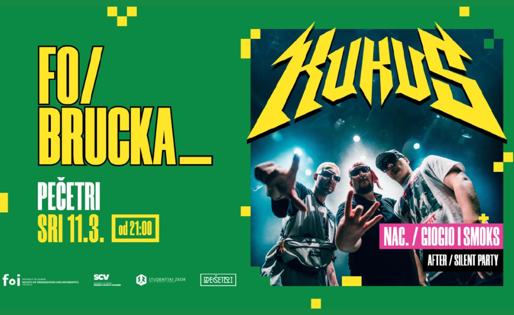 Headliner je legendarni Kuku$! Trio kojeg čine Hiljson Mandela, Goca RIP i Iso Miki, takozvani trap pioniri, na pozornici su već deset godina. Zahvaljujući P4 svirali su u Varaždinu na KVART festivalu i rado su viđeni gosti na sjeveru. U P4 vraćaju se 2026. svirati Brucošijadu FOI-a i najavljuju studentima najjači provod ikad sa starim i novim hitovima s albuma “O kukusima se ne raspravlja”, “Anđeli i bomboni”, “Glupi tejp”, “X”.