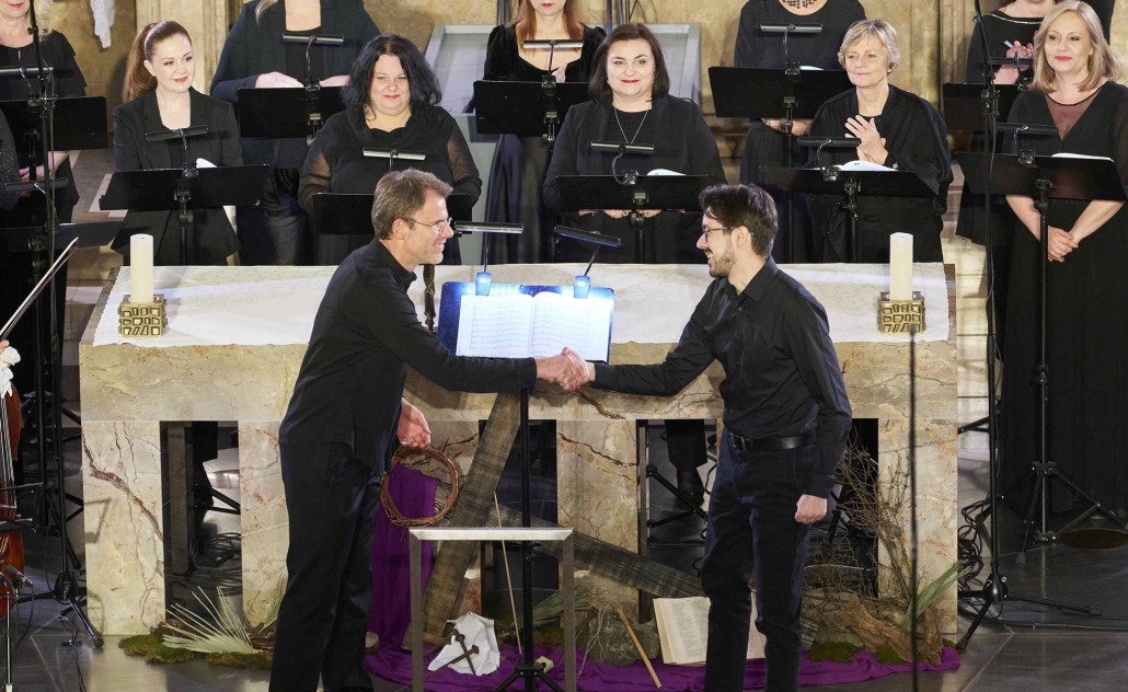 Program, oblikovan kao svojevrsni zvučni prostor na razmeđi kršćanskog Istoka i Zapada, otvoren je skladbom Dona nobis pacem akademika Frane Paraća, meditativnim djelom za zbor a cappella nastalim 1993. godine kao glazbeni zaziv za mirom. Slijedila je Pjesma kerubina Krzysztofa Pendereckog, nadahnuta pravoslavnom liturgijskom tradicijom, u kojoj se jednostavna vokalna linija postupno razvija u bogatu polifoniju. Svyati, britanskog autora Johna Tavenera, zamišljena je pak kao suprotstavljanje glasa svećenika, kojeg simbolizira violončelo, i odgovora iz zbora, a proizlazi iz pjevanja Istočne pravoslavne crkve. Djela estonskog skladatelja-minimalista Arva Pärta, kontekstualno naslonjena na zapadnu liturgijsku tradiciju – Salve Regina za zbor i orgulje te Nunc dimittis za zbor a cappella – Zbor HRT-a ozvučio je u sugestivnoj interpretaciji pod vodstvom maestra Tomislava Fačinija, u suradnji s jednim od najafirmiranijih hrvatskih orguljaša, Pavlom Mašićem.