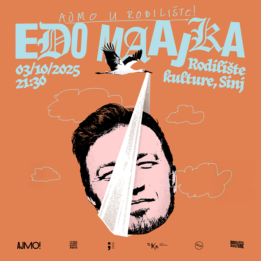 Udruga SKUP najavljuje prvi koncert u sklopu projekta Ajmo u Rodilište!, koji će se održavati od listopada 2025. do ožujka 2026. godine. Program otvara Edo Maajka, jedan od najznačajnijih i najutjecajnijih hip hop izvođača na prostoru regije. Koncert će se održati u petak, 3. listopada 2025., u Rodilištu kulture (Petrovac 2, Sinj) s početkom u 21:30 sati.