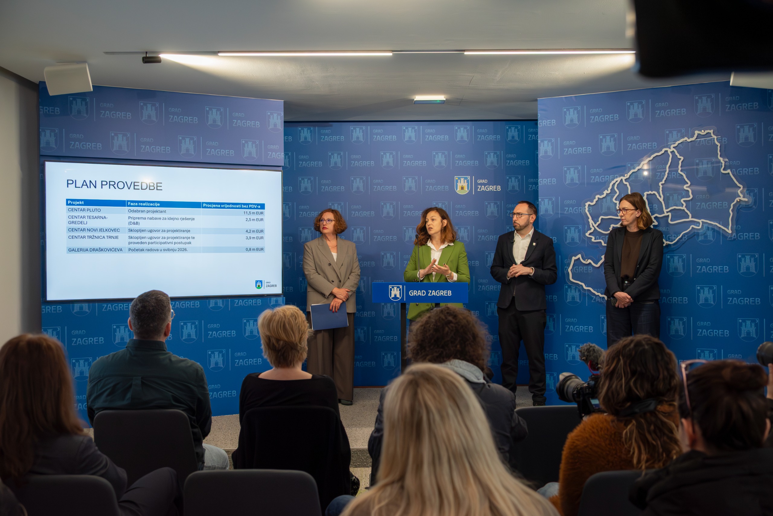 Gradonačelnik Grada Zagreba Tomislav Tomašević danas je sa suradnicima predstavio nova kapitalna ulaganja u kulturnu infrastrukturu. Uz projekte kapitalnih investicija koji su već u provedbi, danas je predstavljeno 5 novih projekata, okvirne procijenjene vrijednosti oko 23 milijuna eura financiranih iz proračuna Grada Zagreba: Kulturno-umjetnički centar Pluto, Muzički centar Tesarna u Gredelju, Kulturni centar Jelkovec, Interkulturni društveni centar Tržnice Trnje i Galerija Draškovićeva. Realizacijom ovih projekata Zagrepčani će dobiti pet novih, suvremeno opremljenih prostora kulture i umjetnosti na ukupno oko 10.000 m2.