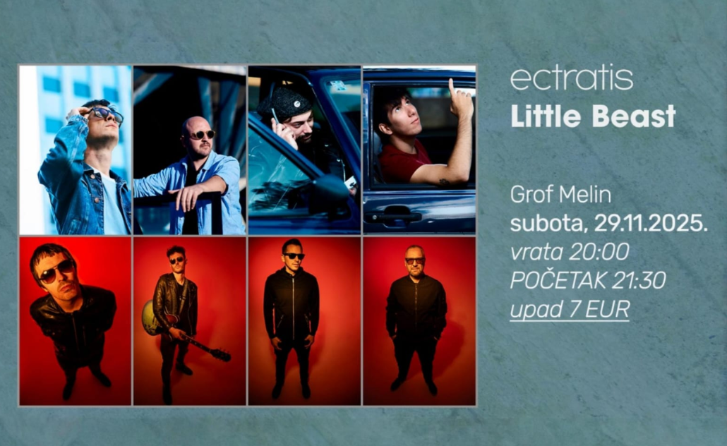 Ectratis je izdao novi album “Dream Screen“, a Little Beast su izdali novi singl “Two of Us“. Ljubiteljima rocka, britpopa, punka, progresivnog jazz i funk zvuka, preporučujemo da zabilježe ovaj datum! Program počinje u 20 sati, a prvi bend izlazi na pozornicu u 21:30.