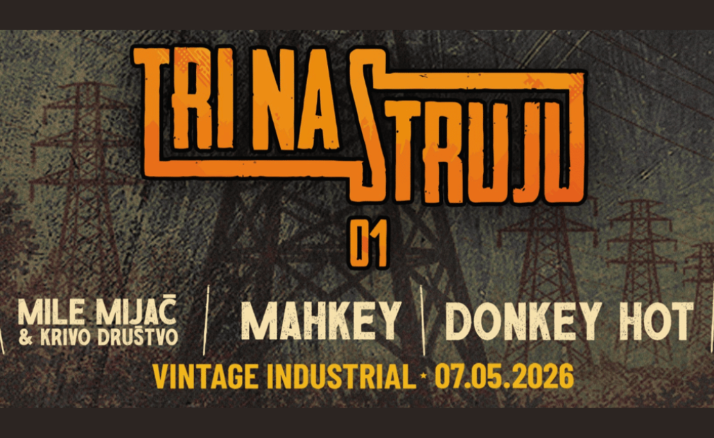 Mahkey, Mile Mijač & Krivo društvo te Donkey Hot bendovi su prvog koncerta rock programa „Tri na struju“ koji će se održati u zagrebačkom Vintage Industrial Baru 7. svibnja.