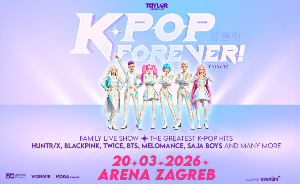 Show inspiriran planetarnim uspjehom filma K-POP Demon Hunters – najgledanijeg filma u povijesti Netflixa – donosi više od sat i pol glazbeno-scenskog iskustva koje je već oduševilo publiku diljem Europe. Koncipiran kao dinamičan family show, K-POP FOREVER! kroz glazbu i ples vodi publiku u sam vrh globalne K-pop scene, podsjećajući zašto su BTS, BLACKPINK, TWICE i drugi postali kulturni fenomen današnjice. Na repertoaru će se naći i hitovi iz filma, uključujući pjesme HUNTR/X-a i SAJA BOYS-a, čiji je soundtrack zauzeo prvo mjesto Billboard 200 ljestvice i premašio 3,5 milijardi slušanja.