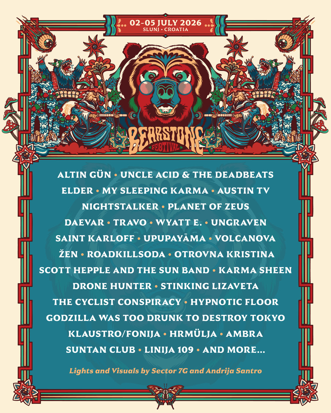 Uz bogatu paletu koja obuhvaća Doom, Psych, Stoner, Punk, Garage, Eksperimentalni Noise i mnoge druge stilove, ovogodišnji lineup Bear Stone Festivala će eruptirati na tri pozornice smještene u jedinstvenom prirodnom krajoliku gdje se glasnoća i atmosfera sudaraju u potpuno festivalsko iskustvo.