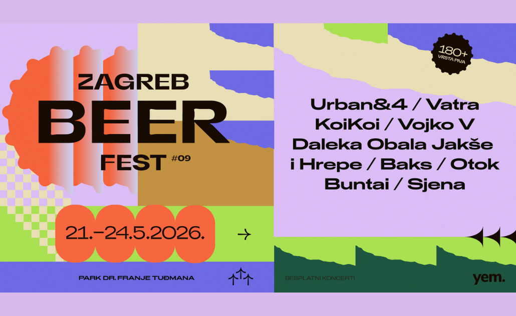 Deveto izdanje Zagreb Beer Festa, koje će se održati od 21. do 24. svibnja u Parku dr. Franje Tuđmana, nastavlja širiti svoj glazbeni program novim izvođačima koji će dodatno obilježiti početak festivalske sezone na otvorenom. Uz ranije najavljena imena Urban&4, Vatra, KoiKoi i Baks – na pozornicu stižu i nova, snažna pojačanja regionalne scene: Vojko V, Daleka Obala Jakše i Hrepe, Otok, Buntai i Sjena.