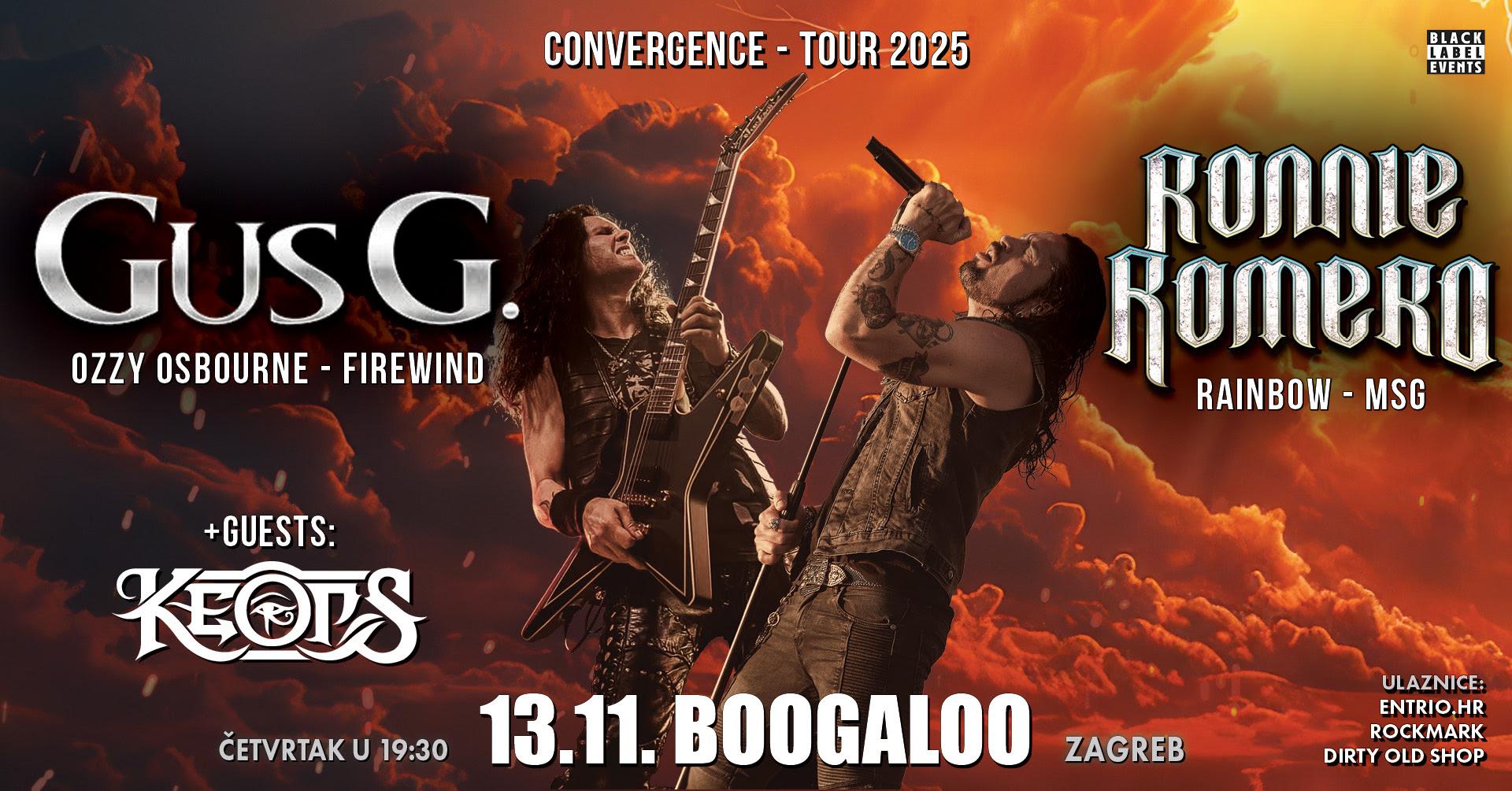 Novi projekt Ronniea Romera i Gus G-a pokrenut je 2024. godine pod nazivom „Convergence“ na što je uslijedilo puno pozitivnih reakcija, pa tako 2025. godine kreću na veliku turneju. Njihov program sadrži miks Gusovih i Romerovih solo albuma, Firewinda, a pored toga i klasike grupa Dio, Rainbow, Black Sabbath, Ozzy Osbourne tako da će biti večer puna rock i metal himni koje će prodrmati Zagreb! Zato ne propustite ovaj metal spektakl jer je ovo jedinstvena prilika da vidite ova dva metal velikana zajedno na pozornici!