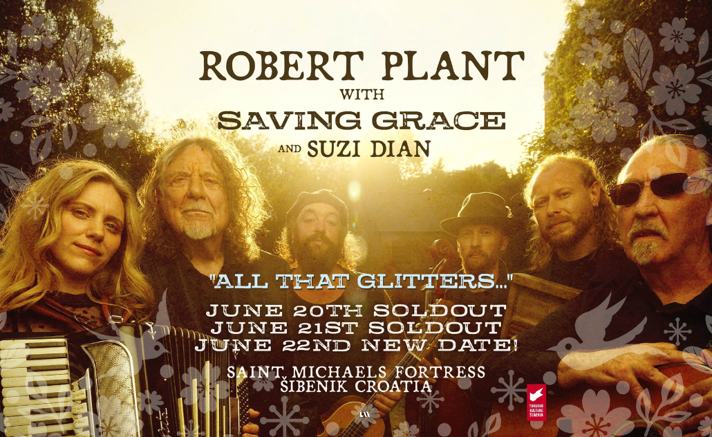 Nakon dva rekordno brzo rasprodana koncerta na Tvrđavi sv. Mihovila, najavljen je i treći koncert Roberta Planta s bendom Saving Grace i Suzi Dian! Legenda rocka na šibenskoj open air pozornici treći put nastupa 22. lipnja.