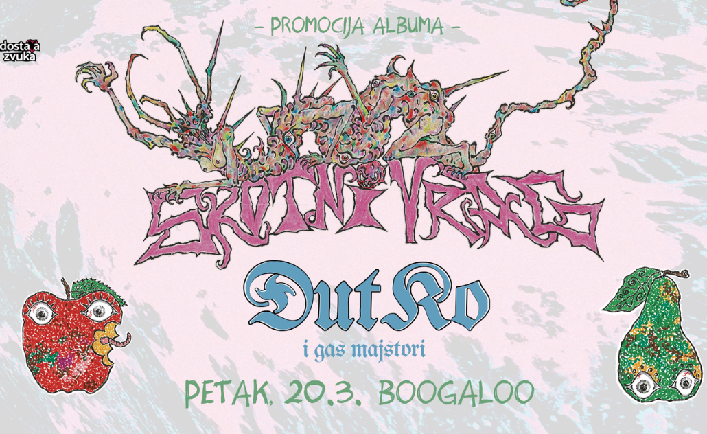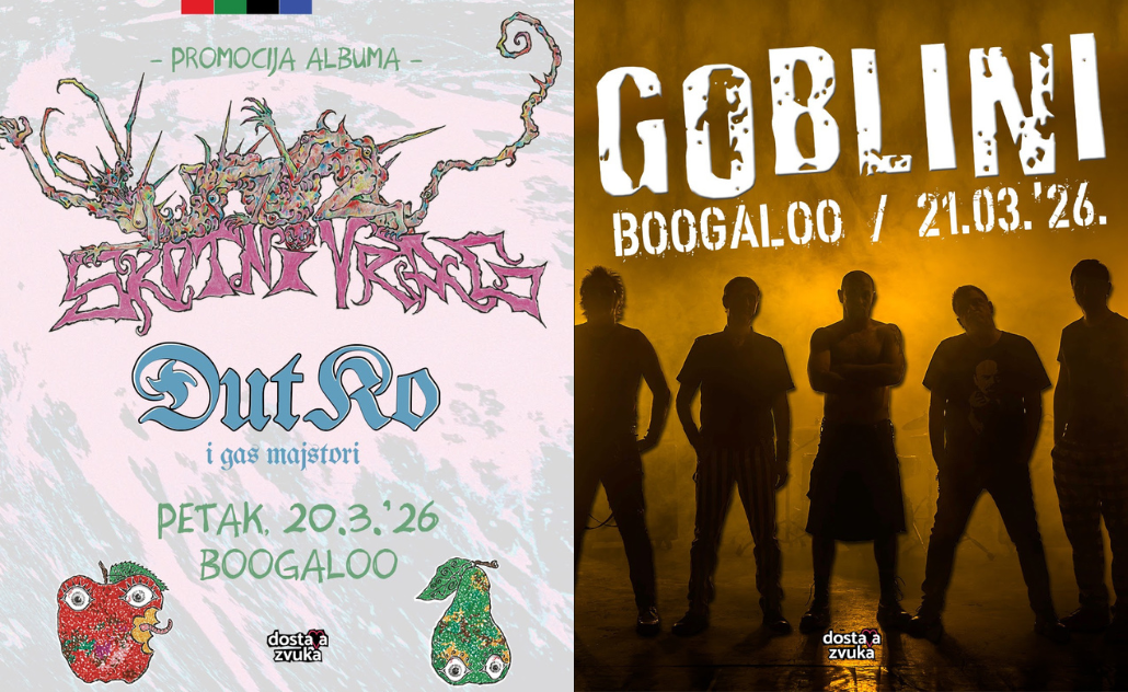 Klub Boogaloo ovoga vikenda postaje mjesto okupljanja ljubitelja alternativne i punk scene kroz dva koncertna događaja koja organizira Dostava Zvuka. Publiku očekuje promocija novog albuma Skotnog Vraga, ali i nastup jednog od najvažnijih punk bendova s prostora bivše Jugoslavije – Goblina. Ulaznice za oba koncerta dostupne su u Dirty Old Shopu i u sustavu Entrio.