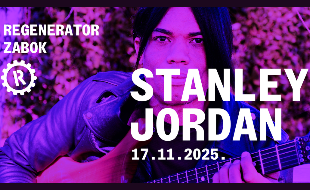 Klub Regenerator s ponosom najavljuje koncert Stanleyja Jordana, jednog od najinovativnijih gitarista današnjice, nevjerojatnog virtuoza četiri puta nominiranog za nagradu Grammy, uvrštenog u vrh liste najutjecajnijih gitarista svijeta. Stanley Jordan će nastupiti u zabočkom klubu Regenerator u ponedjeljak 17. studenog, a ulaznice se mogu kupiti već sada u pretprodaji putem Core Event sistema.