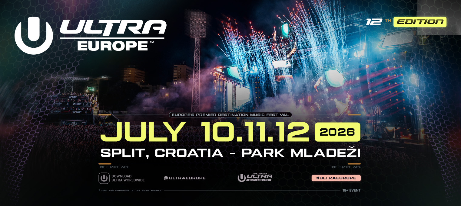 Nakon što je u Split doveo više od milijun posjetitelja iz preko 144 zemalja svijeta, omiljeni destinacijski festival Ultra Europe vraća se još inovativniji i sadržajniji! Od 10. do 12. srpnja 2026., Split će ponovno postati globalna pozornica slobode, zajedništva i elektroničke glazbe, mjesto gdje se ljeto slavi punim plućima i gdje se susreću stil, glazba i emocije. Jedanaesto izdanje oduševilo je sve – od spektakularnih DJ setova koji se još uvijek prepričavaju, video spota Martina Garrixa snimljenog upravo na Ultri pa sve do svjedočanstava fanova koji su doživjeli “najbolji vikend života” i tisuća živopisnih outfita koji su preplavili društvene mreže. Odbrojavanje do dvanaestog izdanja započinje puštanjem limitiranog kontingenta ulaznica za građane Hrvatske u prodaju dostupnih isključivo u online sustavu Entrio.