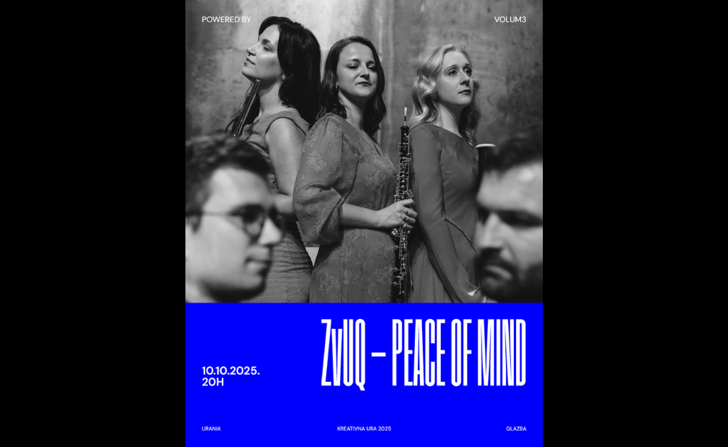 U petak, 10. listopada u 20 sati, u Uraniji – prostoru kreacije, započinje novo poglavlje dijaloga između glazbe, prostora i misli: koncertom PEACE of MIND ansambla Zagreb Unlimited Quintet (ZvUQ) otvara se suradnički koncertni ciklus u sklopu programa Kreativna Ura, koji istražuje ulogu glazbe u suvremenom društvu – kao prostora slušanja, razumijevanja i zajedništva.