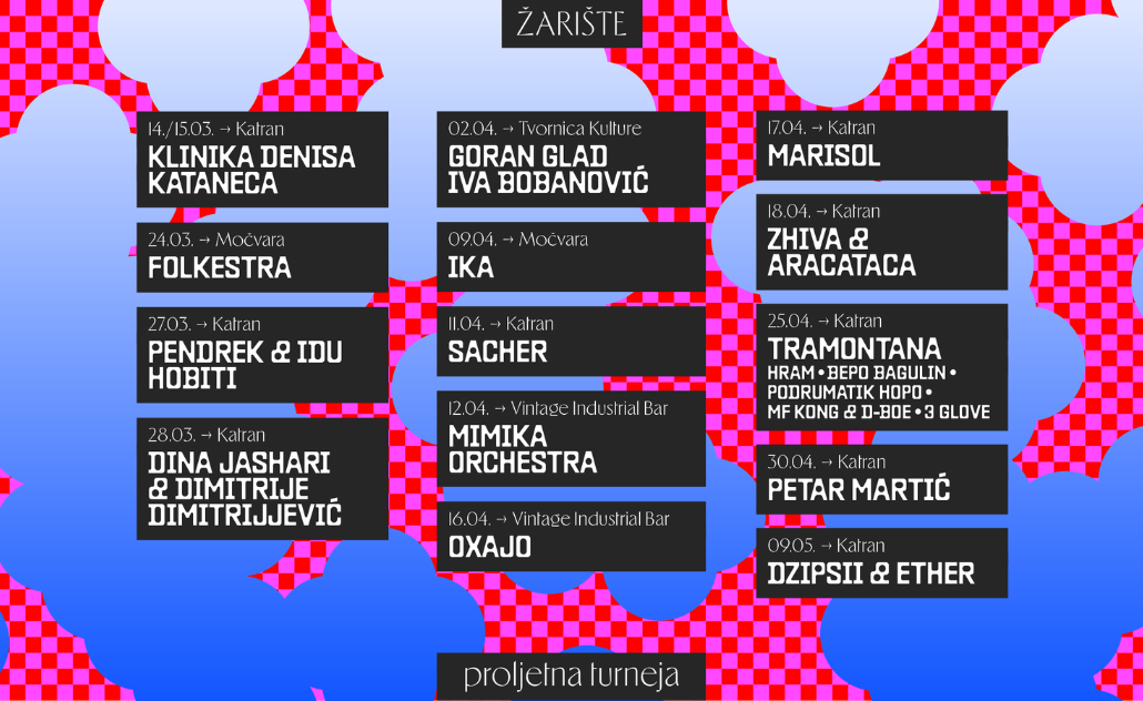 Medijski partneri Žarište proljetna turneja 2026. su Glazba.hr i Radio Student.