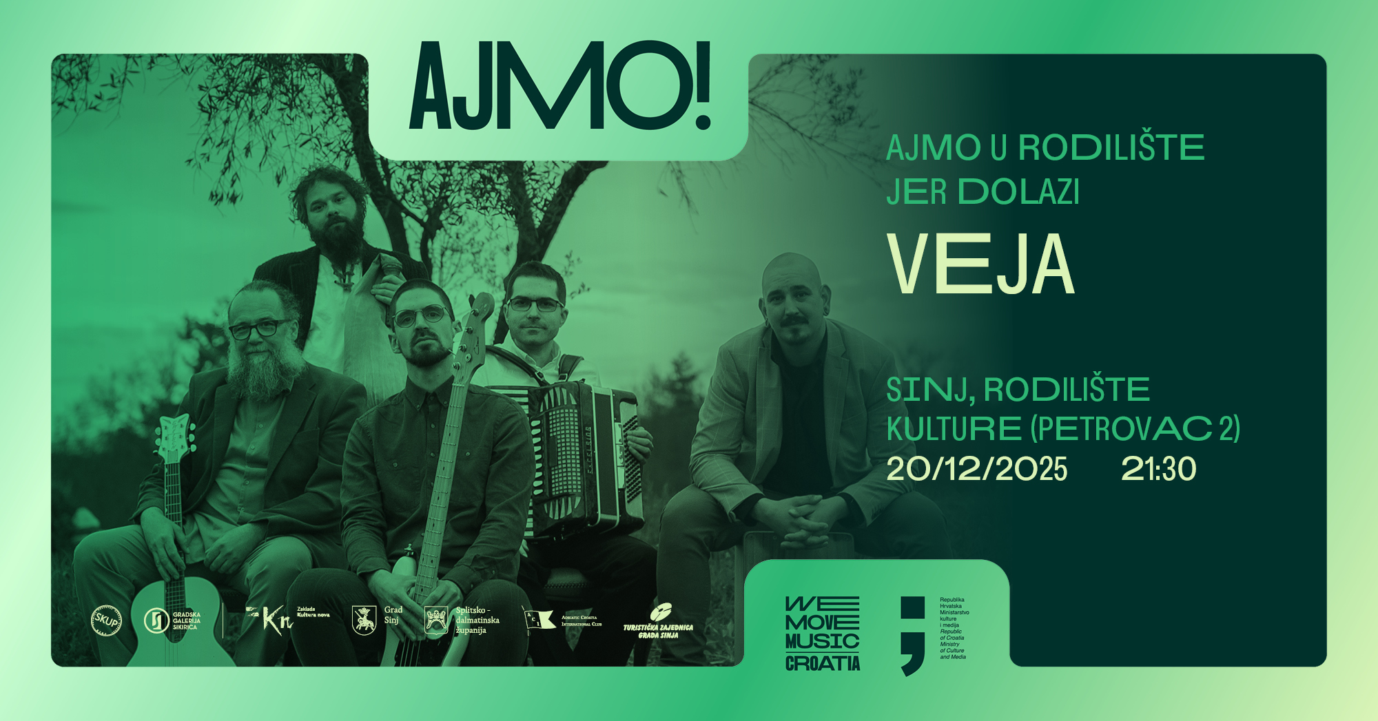 Jedan od najznačajnijih hrvatskih world music bendova – Veja, 20. prosinca 2025. nastupit će u sinjskom Rodilištu kulture (Sinj, Petrovac 2).